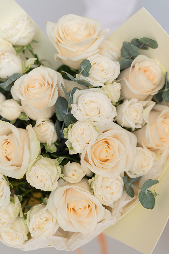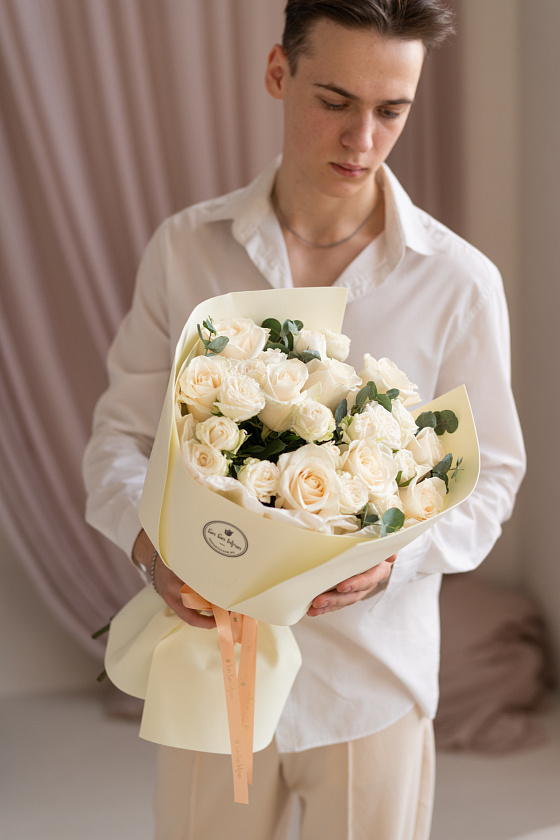 На стоимость композиции влияет упаковка, сорта, количество цветов, присутствие зелени или декоративных элементов. Цены располагаются под каждым товаром на сайте.