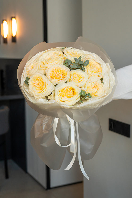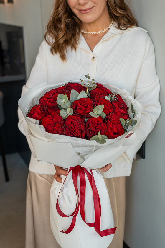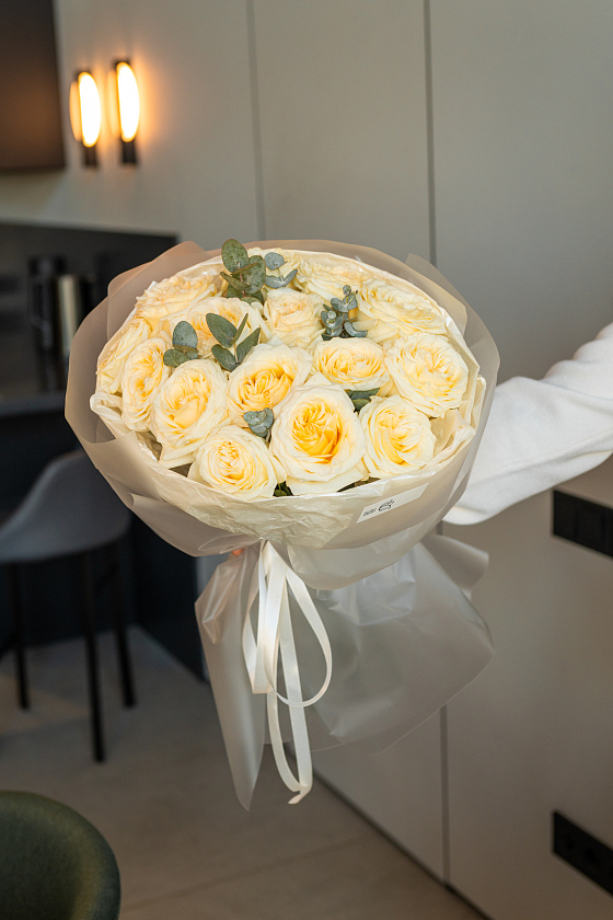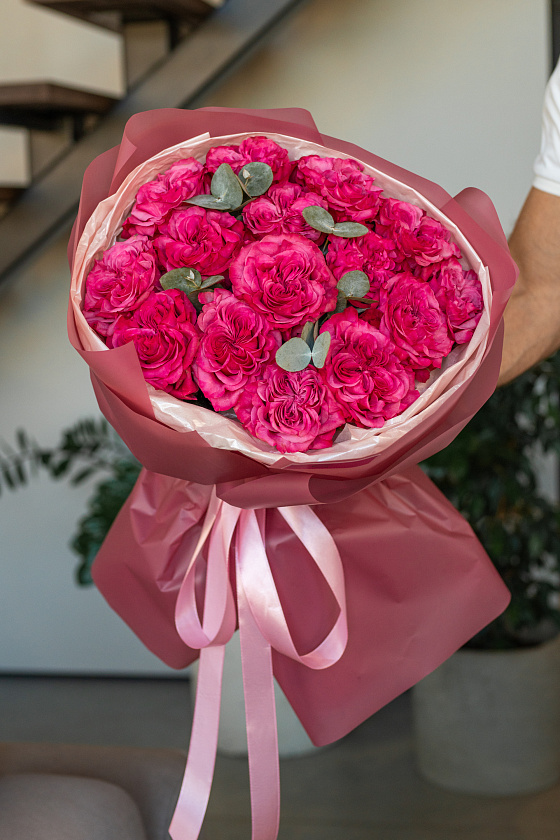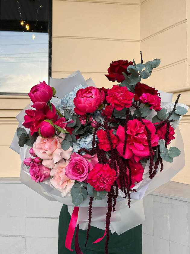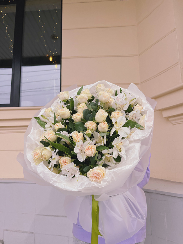 На стоимость композиции влияет упаковка, сорта, количество цветов, присутствие зелени или декоративных элементов. Цены располагаются под каждым товаром на сайте.