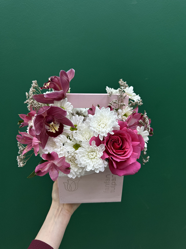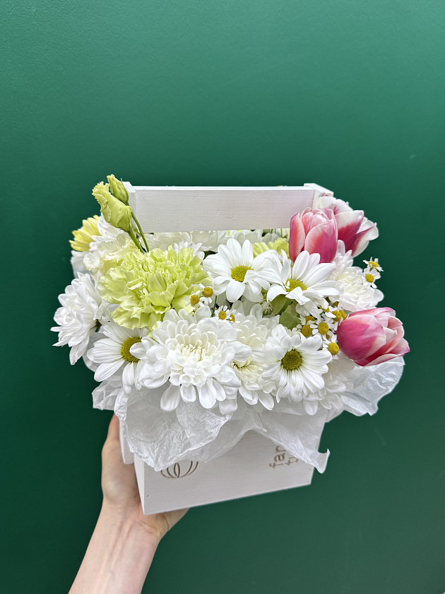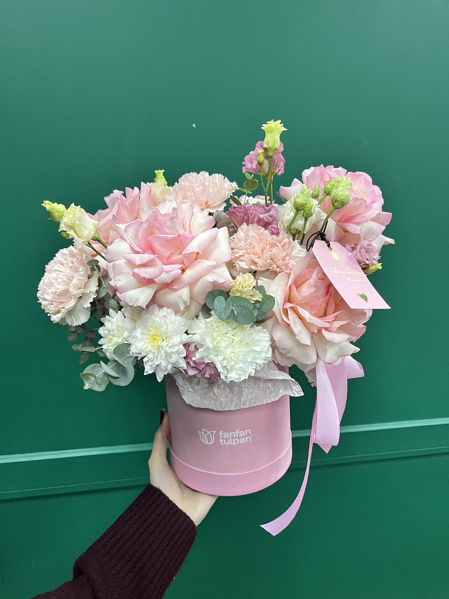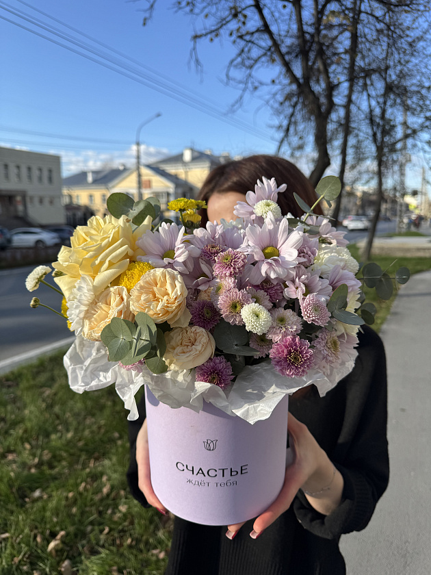 Собираем изысканные моно- и микс-композиции в корзинах, крафте, ящиках и шляпных коробках.
