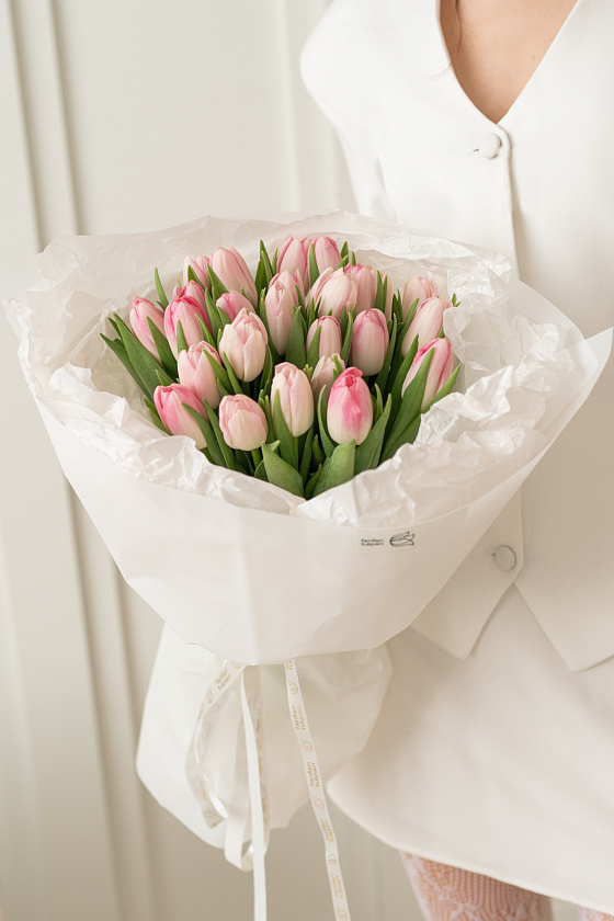Букет с розовыми тюльпанами Розовый жемчуг