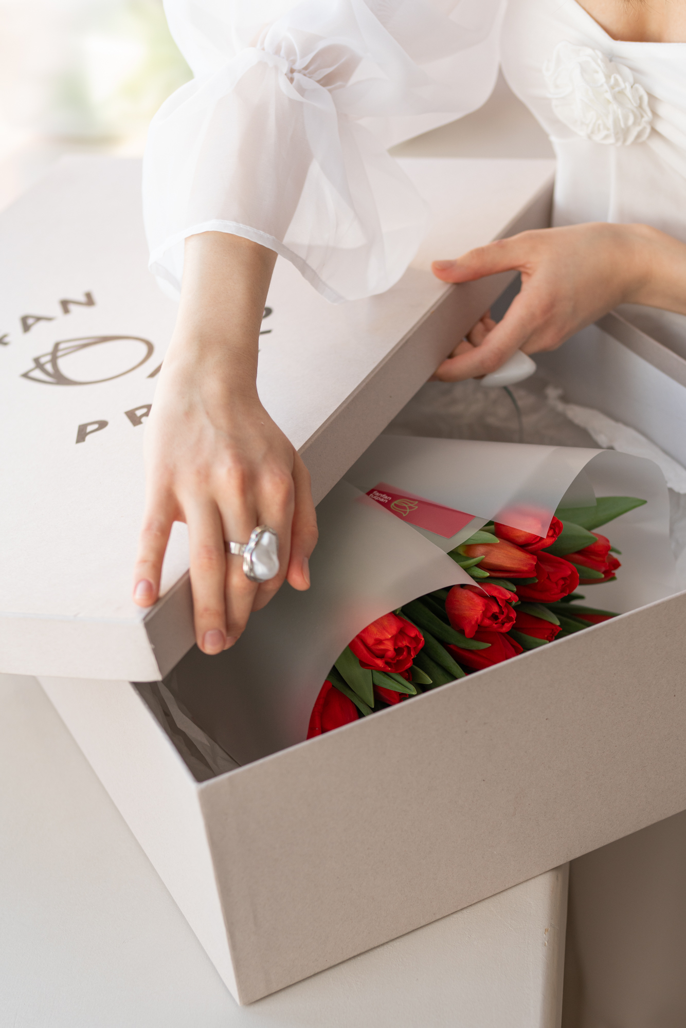 Изысканный подарочный бокс — идеальное решение для трогательного поздравления. Это не просто букет, а продуманный презент, сочетающий живую красоту цветов и практичный элемент интерьера.