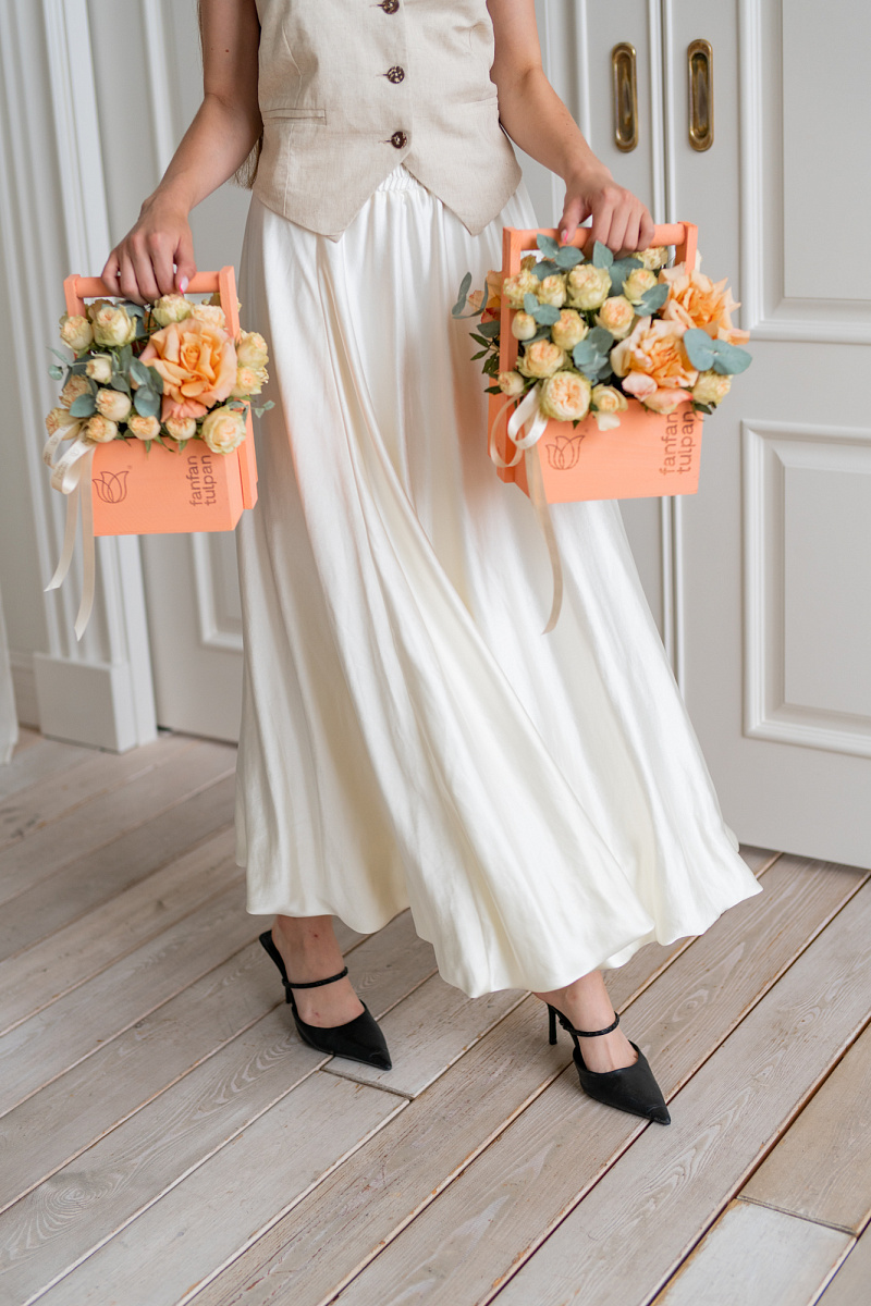 Этот букет из персиковых роз и персиковых кустовых роз станет истинным изумлением для каждого, кто окажется рядом с ним. Он вызывает неописуемые эмоции, погружая нас в волшебный мир роскоши и элегантности. Каждый цветок словно рассказывает свою уникальную историю, раскрывая перед нами тайны природы и ее бесконечных вдохновляющих возможностей.