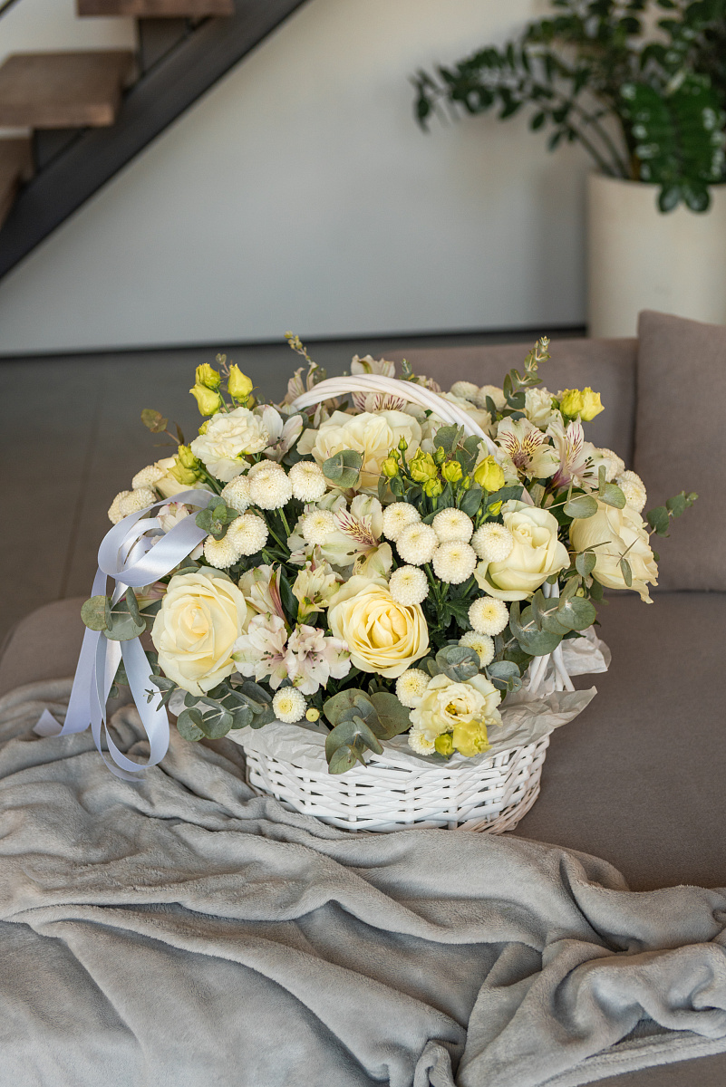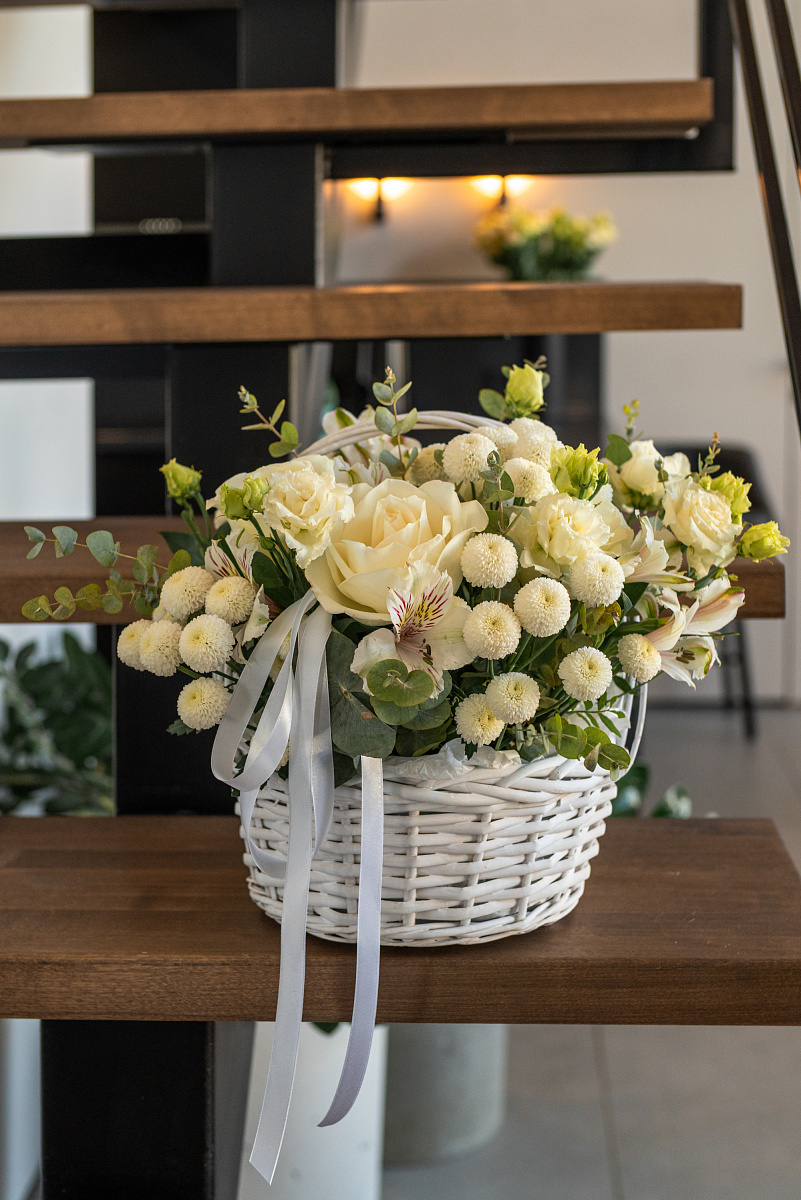 Эта корзина — не просто букет, а тёплое объятие, воплощённое в цветах. Композиция создана, чтобы сказать маме самое главное: «Я люблю тебя, ценю и благодарю за всё».