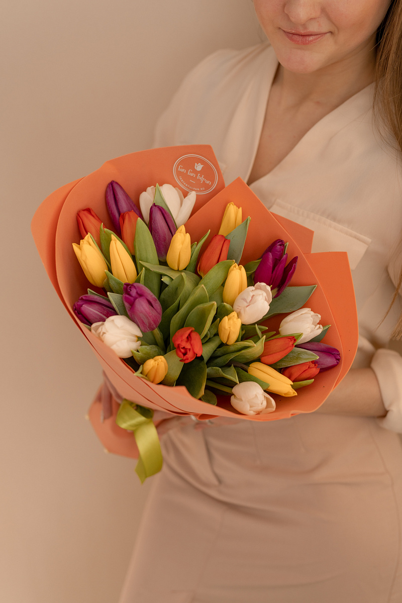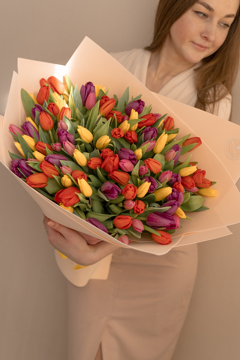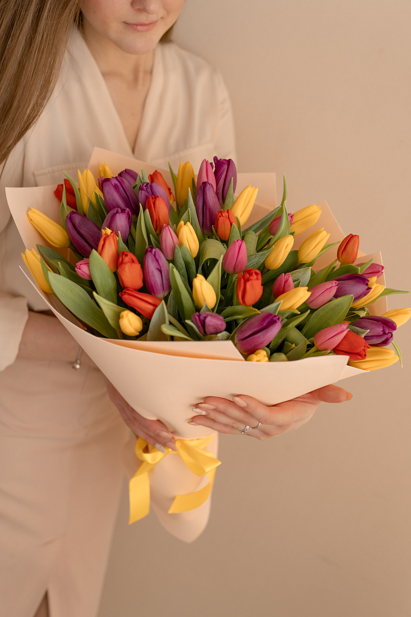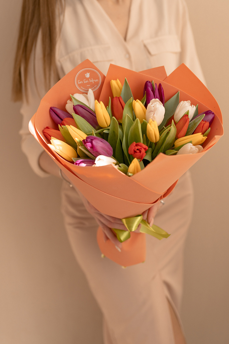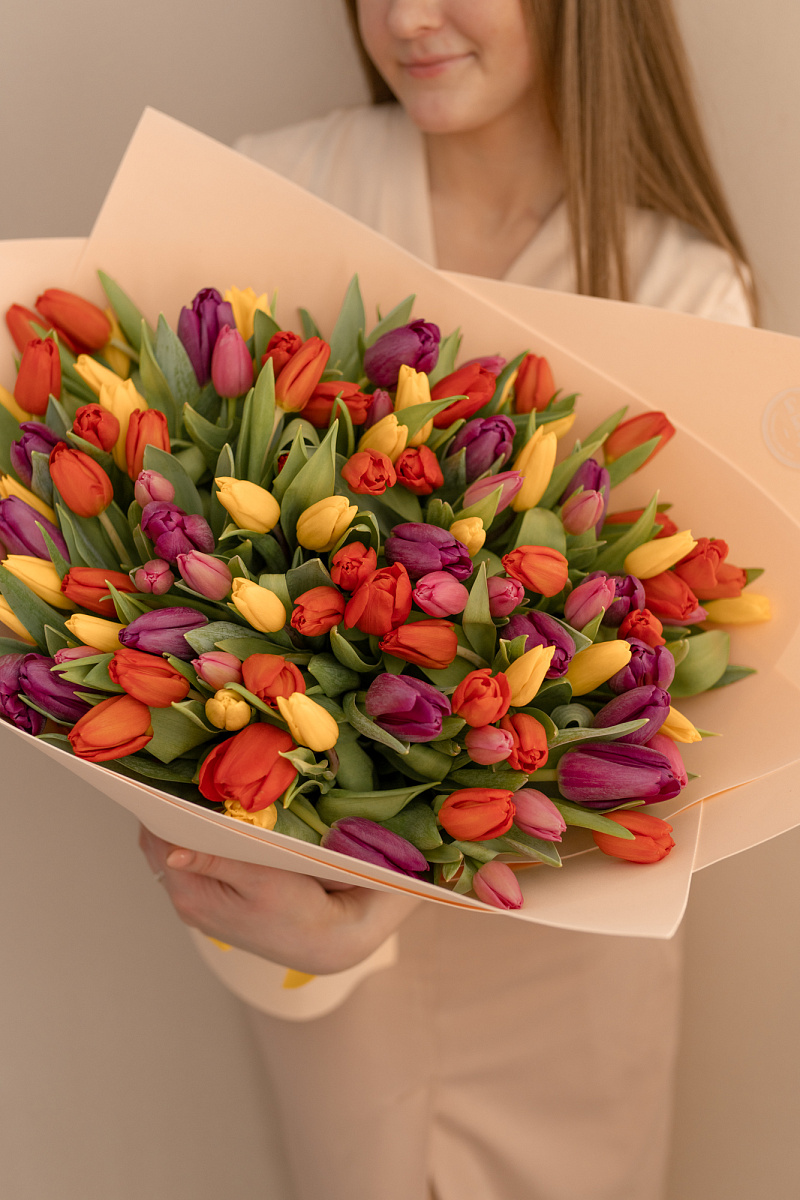 Тюльпаны — это и символ весны, и проявление бесконечной красоты природы. Их нежные лепестки, испускающие легкий аромат, завораживают своей простотой и изысканностью одновременно. И вот, когда ты видишь целый букет из тюльпанов перед собой, то понимаешь, что это произведение искусства, созданное руками талантливых флористов.