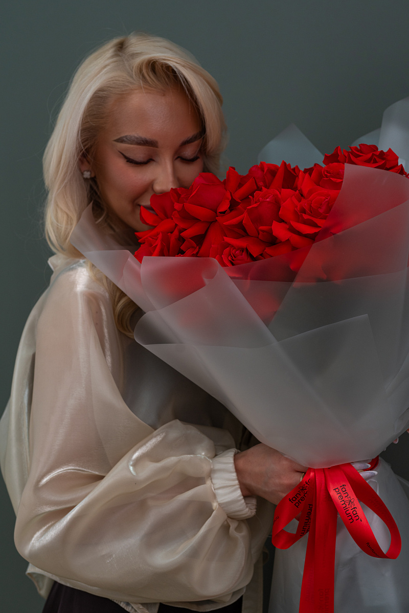Это очаровательное собрание из 25 красных пышных бутонов сорта Nina создает яркий и выразительный аккорд красоты и страсти. Насыщенный алый оттенок подчеркивает силу эмоций и глубину переживаний, заставляя сердце биться чаще. Бутоны с округлой формой и плотной структурой выглядят особенно эффектно благодаря шелковистой фактуре лепестков и глубокому благоуханию.