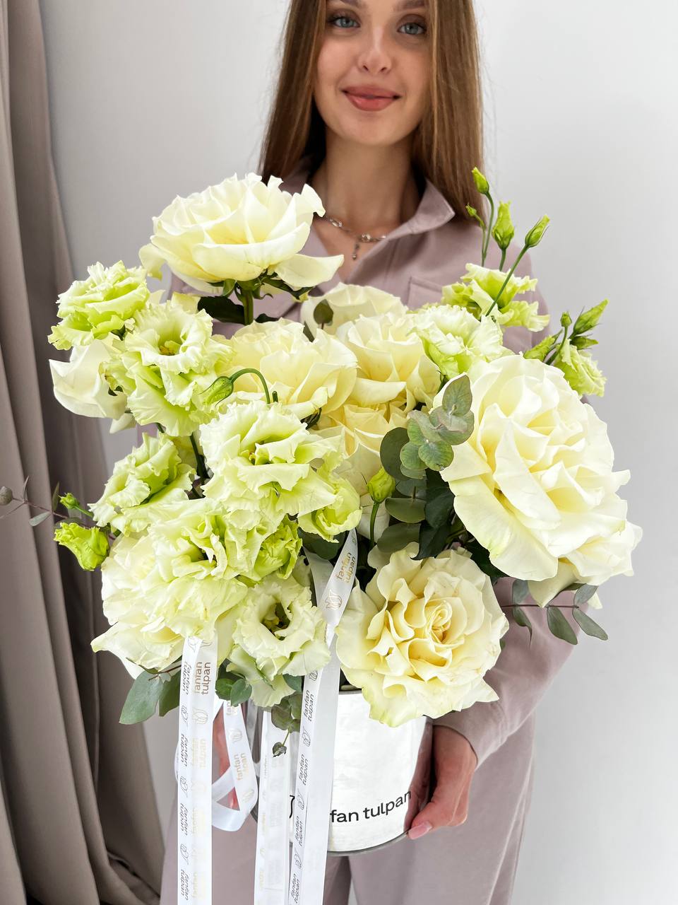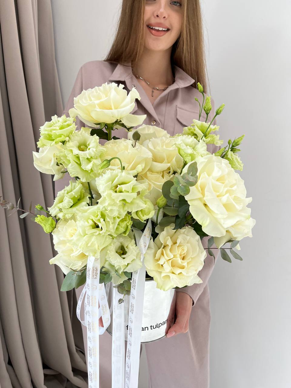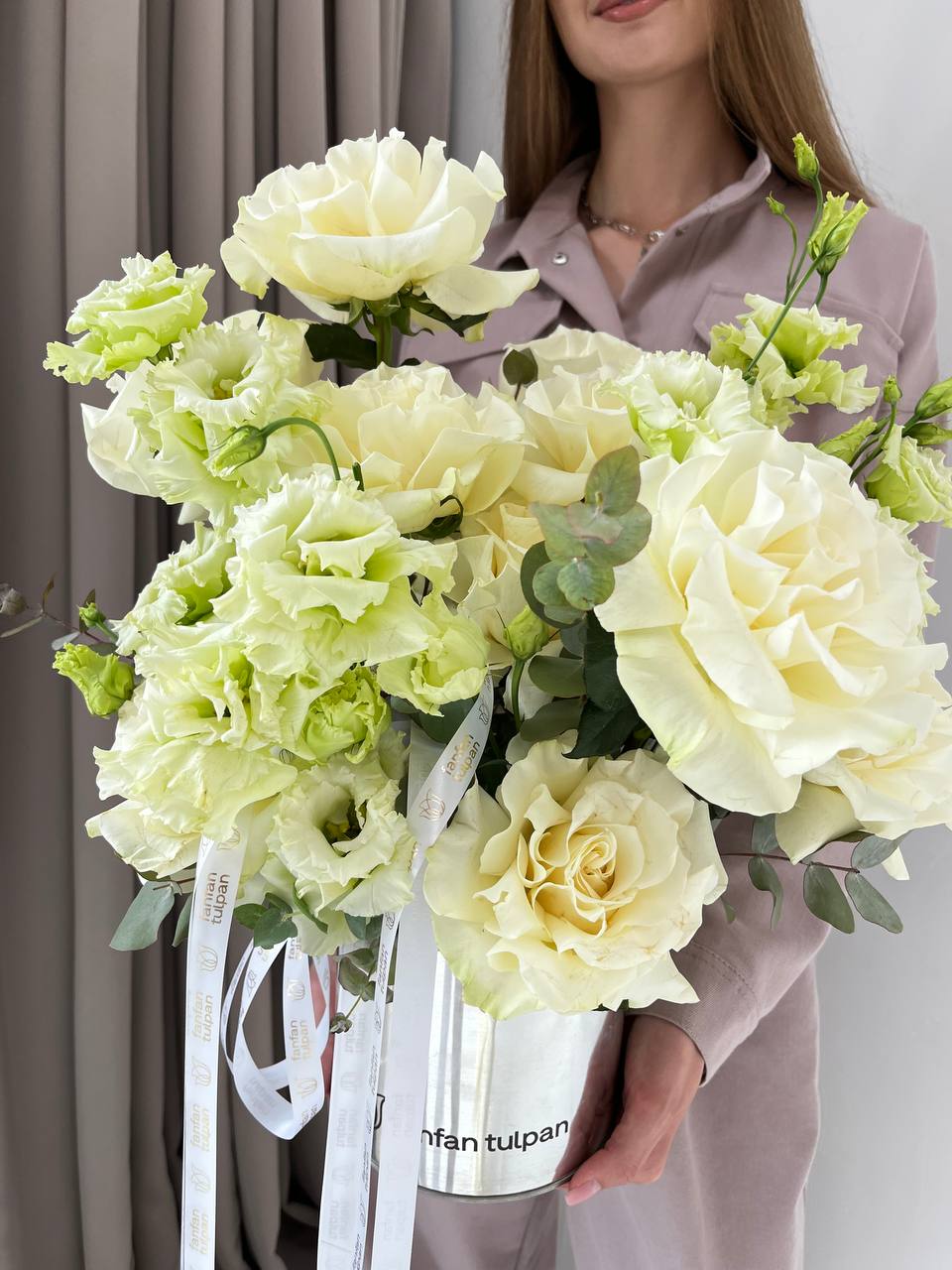 Данная цветочная композиция под запрос. Это значит что возможно у нас отсутствует какой-либо цветок в составе букета. Но мы готовы собрать похожую композицию, не чуть не менее красивую чем эта. Вы можете оставить заявку. И мы свяжемся с вами и предложим возможные варианты.