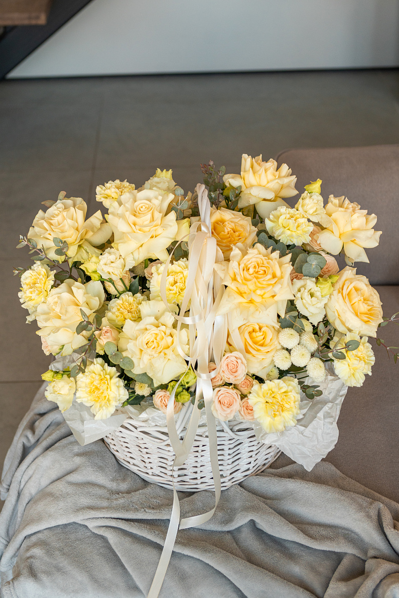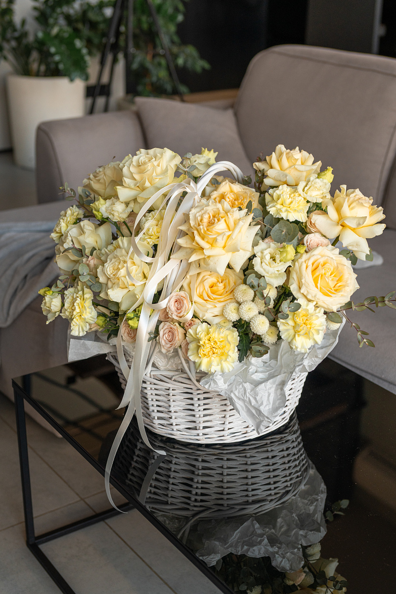 Большая корзина «Свежесть чувств» — это гимн природной красоте и искренним эмоциям. Композиция словно передаёт первое дыхание весны: лёгкие, воздушные оттенки и изящные формы создают ощущение пробуждения и радостного ожидания.