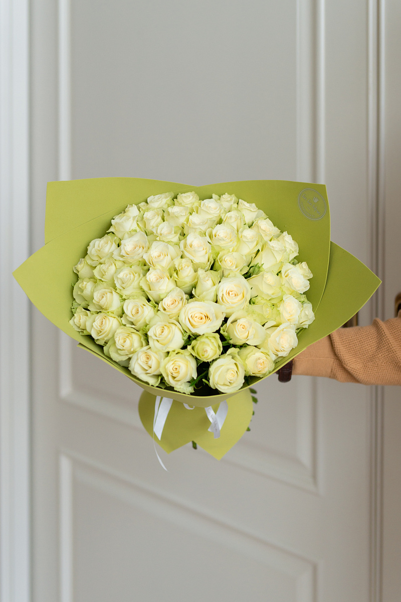 Букет доставляется в транспортировочном комплекте: "аквабокс + транспортировочная коробка-трапеция" или "аквабокс+фирменный пакет".