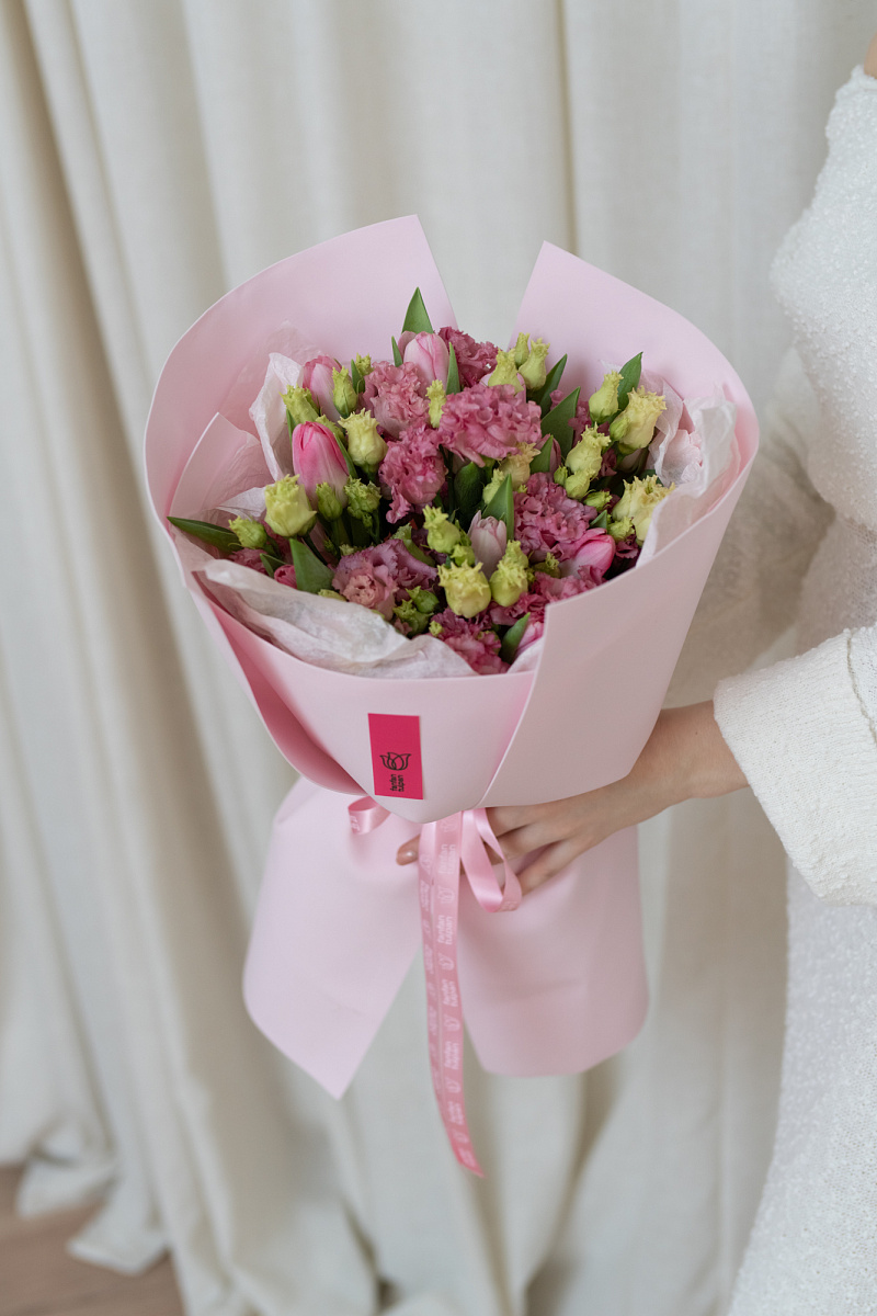 Эустомы символизируют искренность и преданность, а тюльпаны — весну и обновление. Такой букет станет отличным подарком для близкого человека, подчеркивая ваши чувства и заботу. Он идеально подойдет для различных случаев: от дня рождения до романтического свидания или просто как приятный сюрприз без повода.