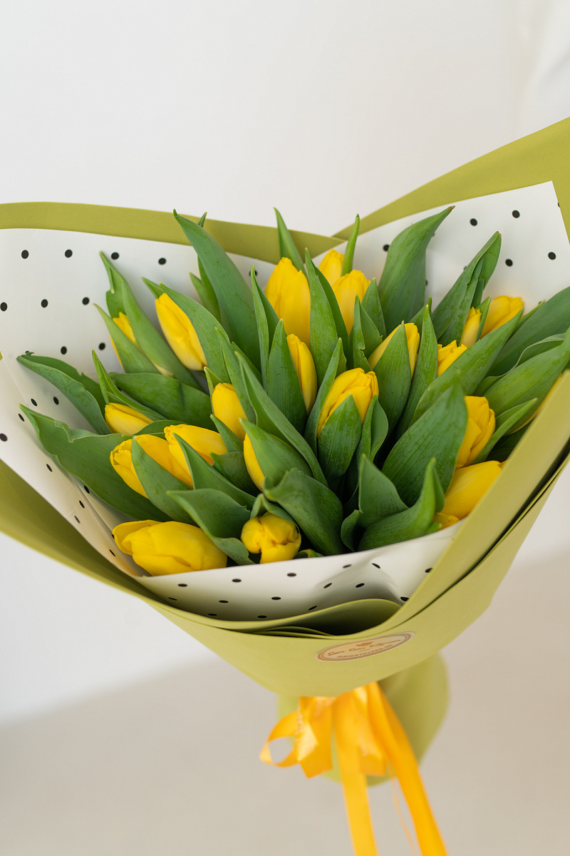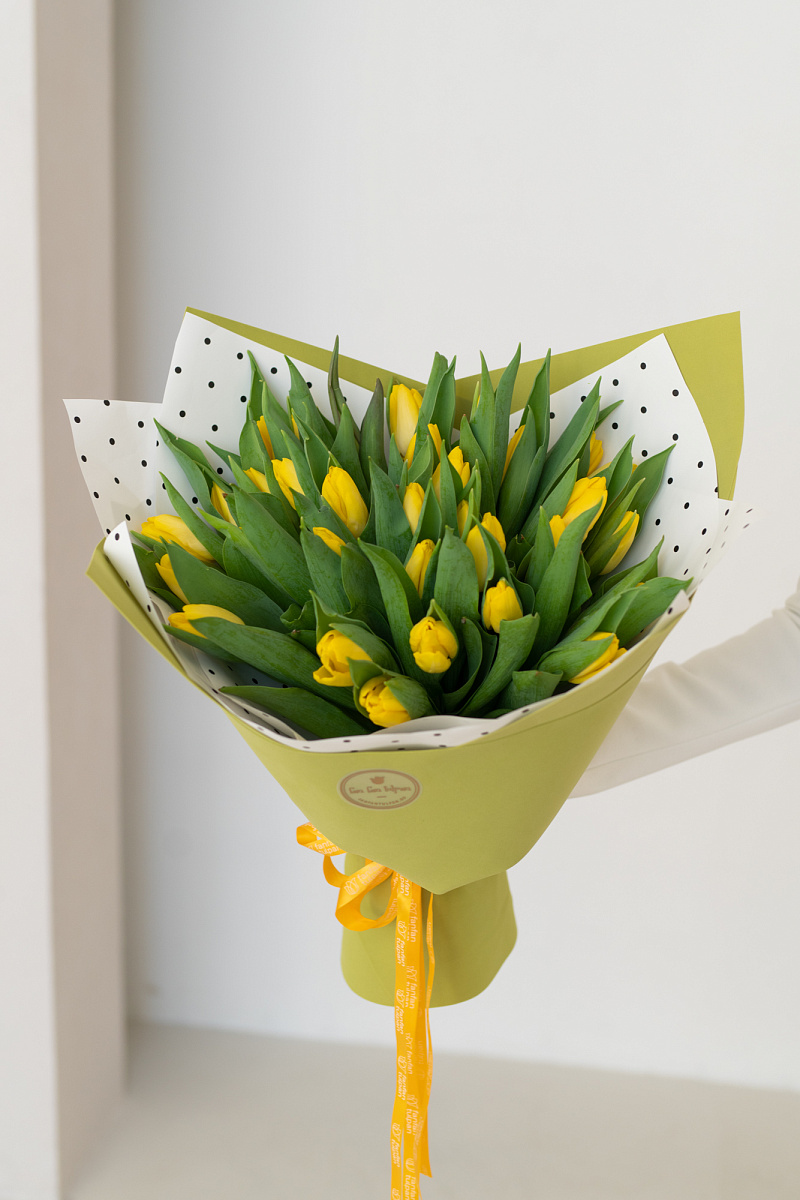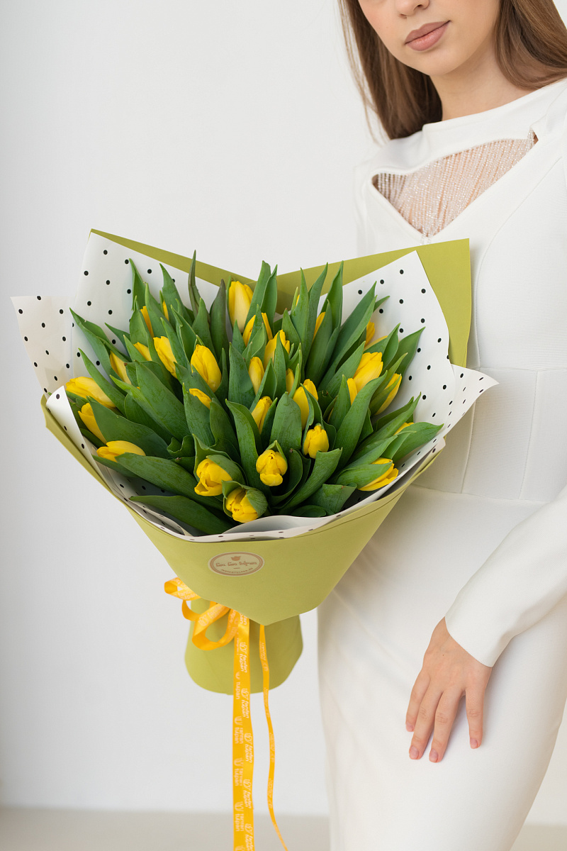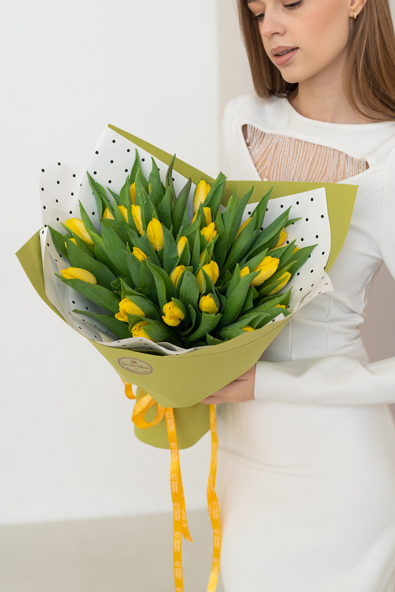 Тюльпаны — это и символ весны, и проявление бесконечной красоты природы. Их нежные лепестки, испускающие легкий аромат, завораживают своей простотой и изысканностью одновременно. И вот, когда ты видишь целый букет из тюльпанов перед собой, то понимаешь, что это произведение искусства, созданное руками талантливых флористов.