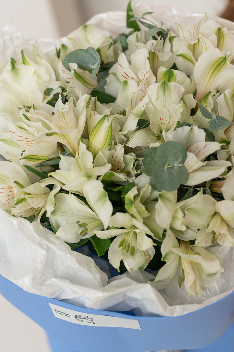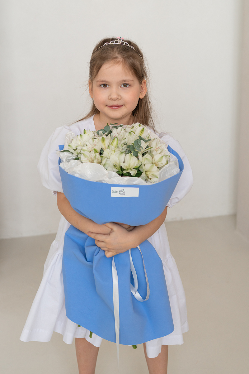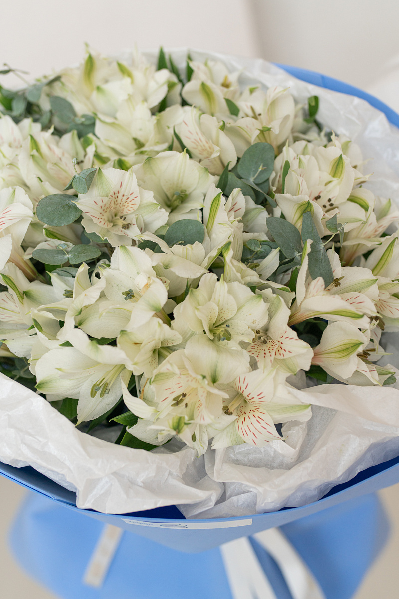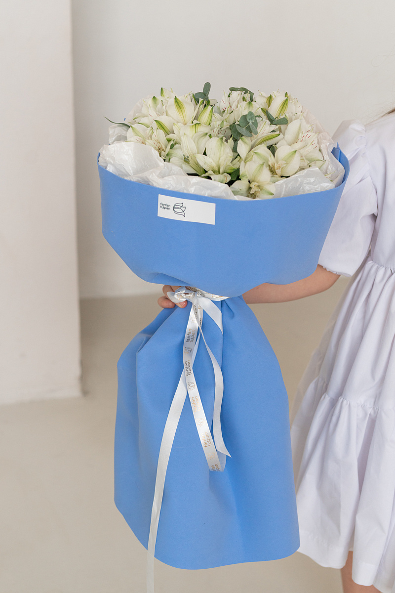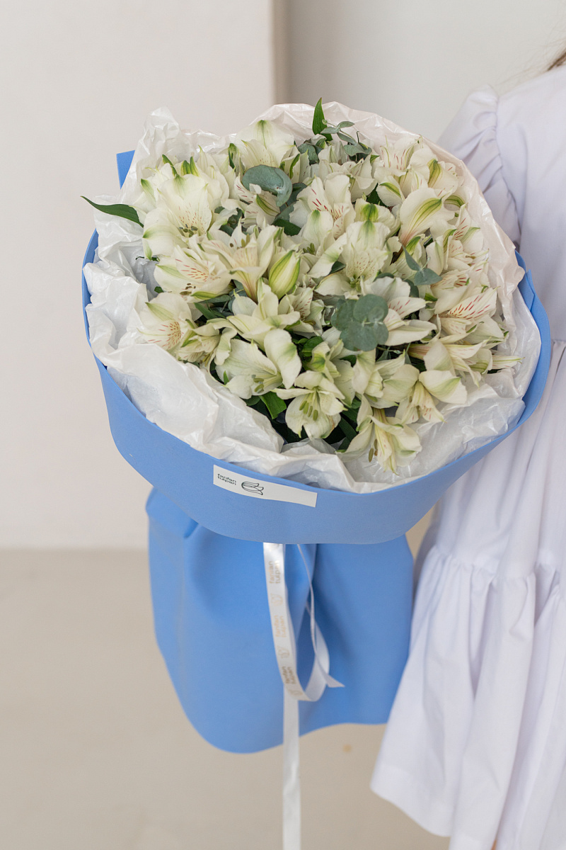 Букет из белых альстромерий — словно несказанное „я ценю тебя“. Каждый цветок шепчет о чистоте чувств, искренности и трепетной заботе. Подарите его тому, кто наполняет вашу жизнь светом и делает каждый миг особенным.