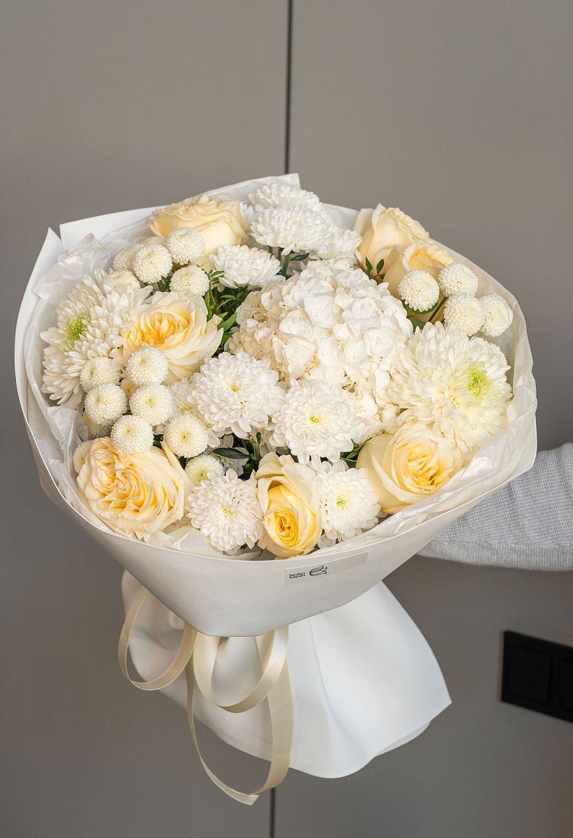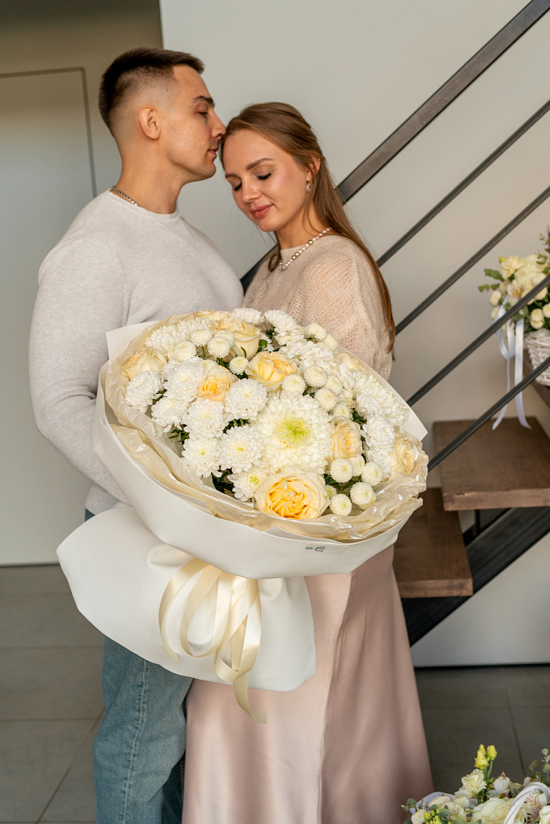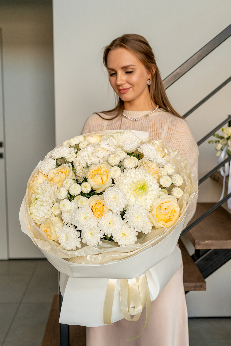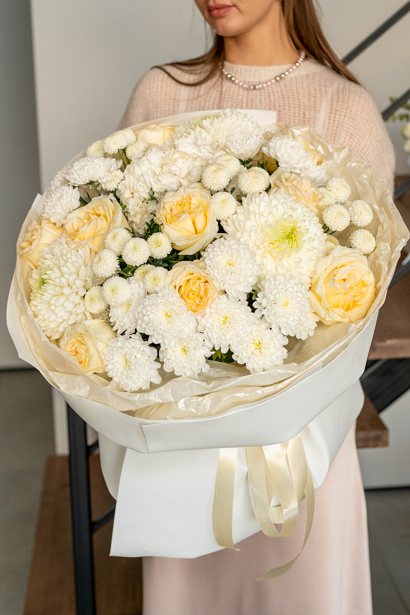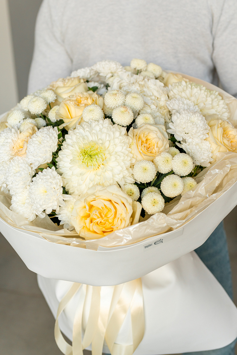 Этот букет — сердечное признание в любви и благодарности самому дорогому человеку. Каждый цветок композиции, каждый оттенок и текстура передают тепло, заботу и глубокое уважение к маме.