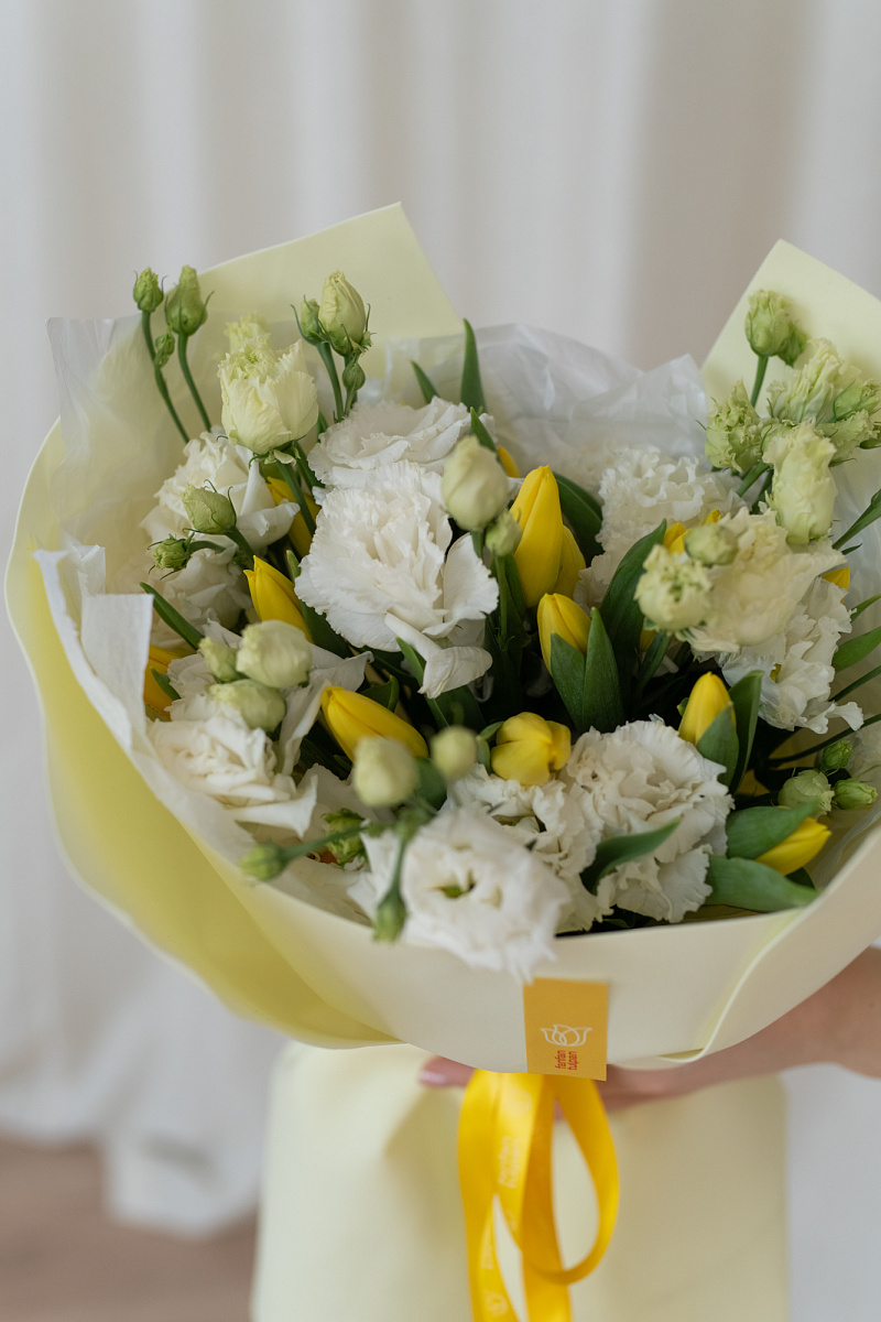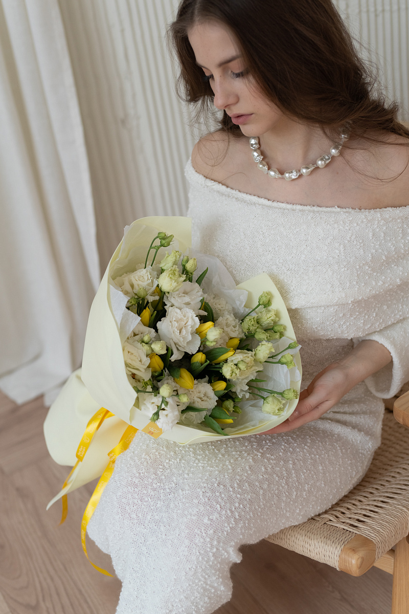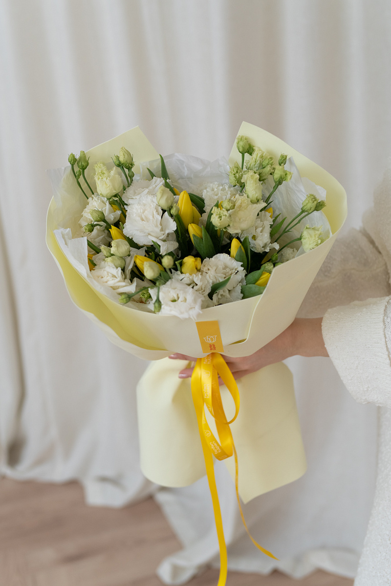 Эустомы символизируют искренность и преданность, а тюльпаны — весну и обновление. Такой букет станет отличным подарком для близкого человека, подчеркивая ваши чувства и заботу. Он идеально подойдет для различных случаев: от дня рождения до романтического свидания или просто как приятный сюрприз без повода.