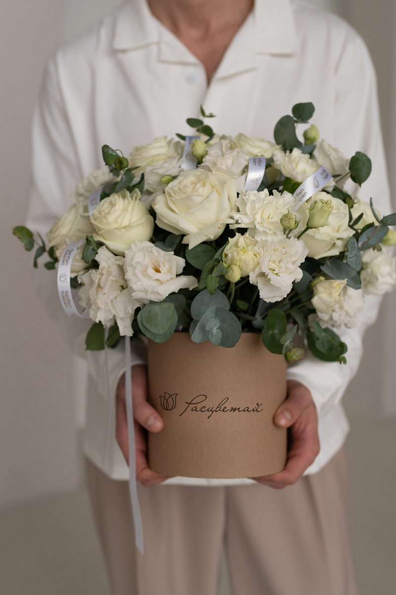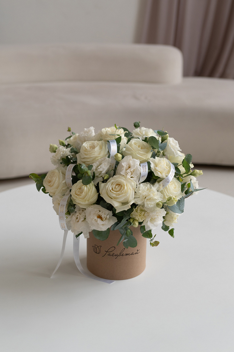 Цветочная композиция в коробке "Расцветай" — это идеальный способ выразить свои чувства и подарить радость близкому человеку. Эта изысканная композиция сочетает в себе нежные цветы, которые символизируют любовь и заботу.
