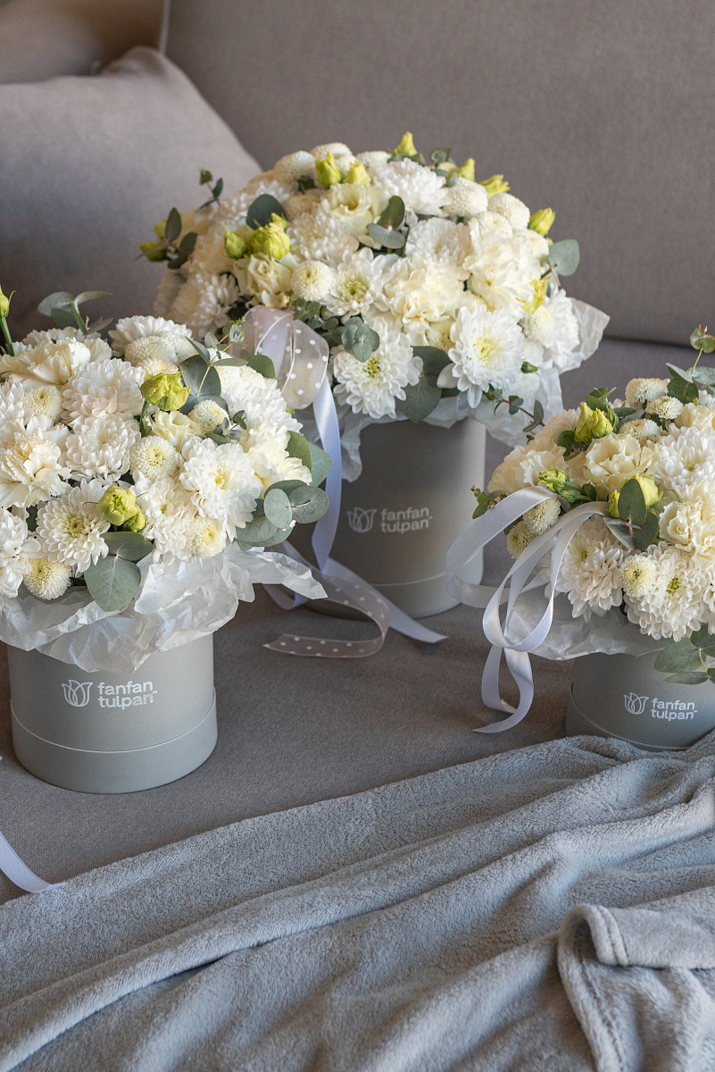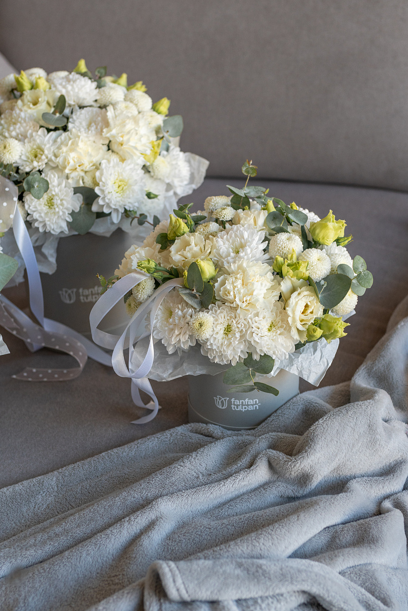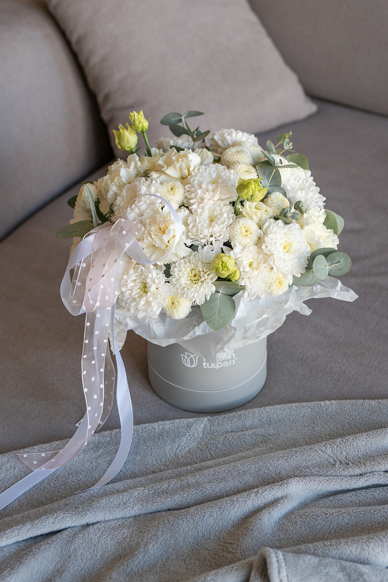 Элегантная композиция в стильной коробке — это современный флористический шедевр, где гармония форм, оттенков и текстур создаёт неповторимое впечатление.