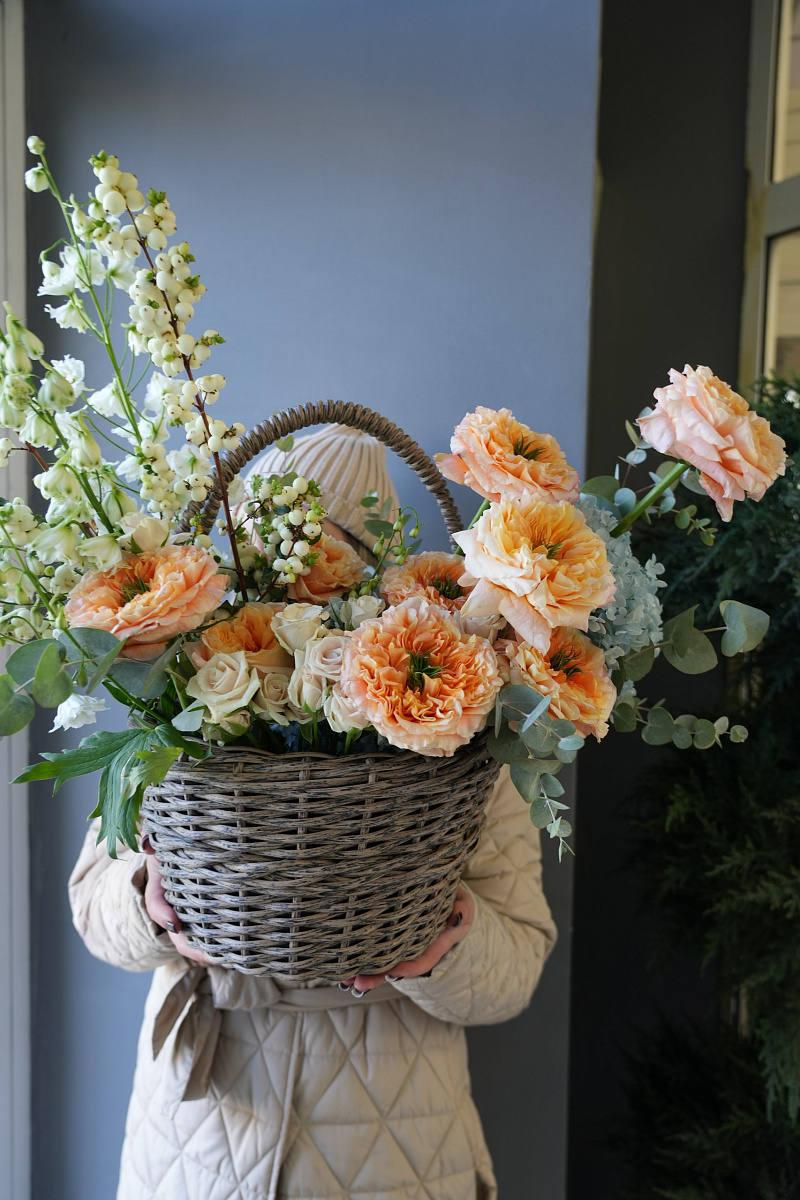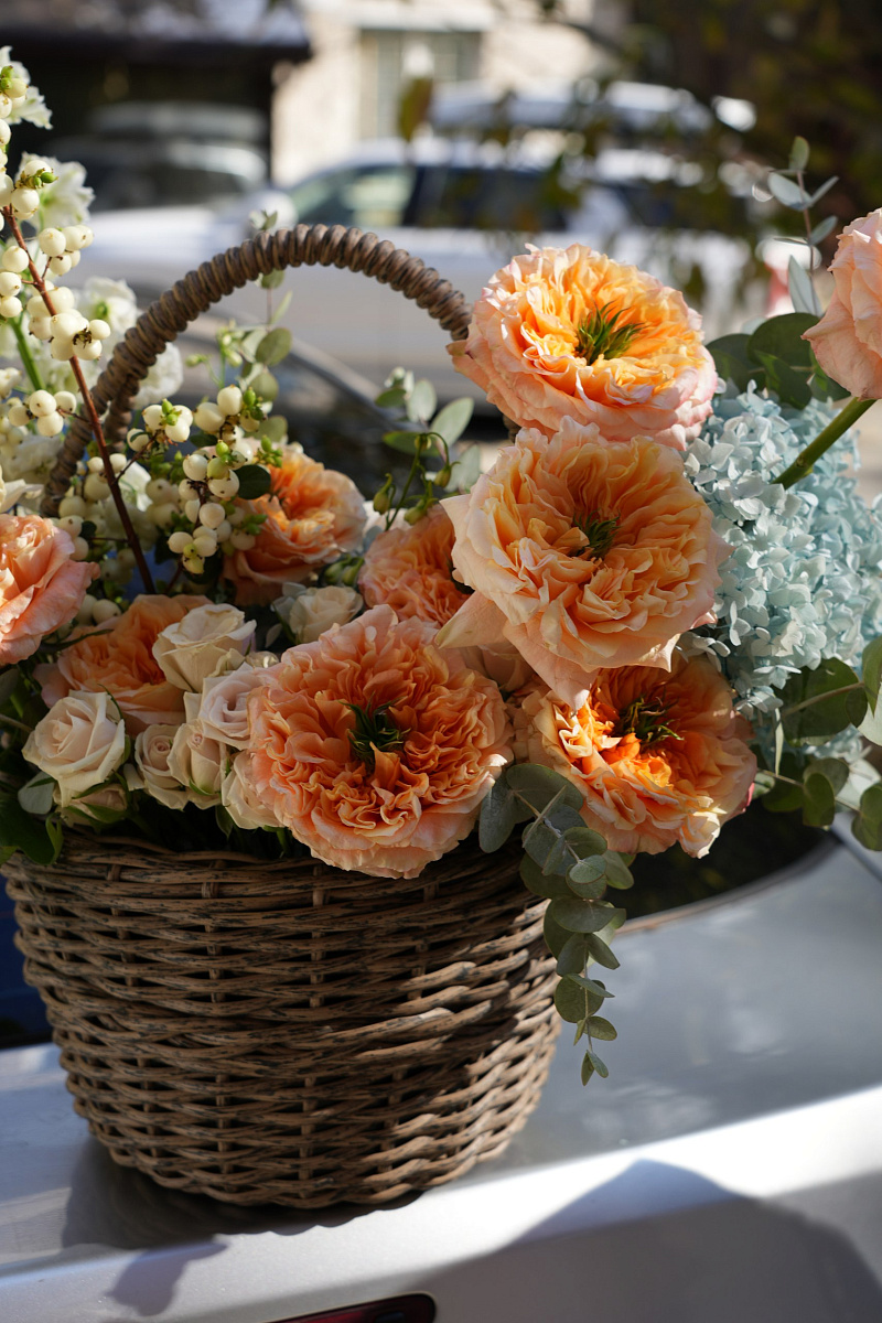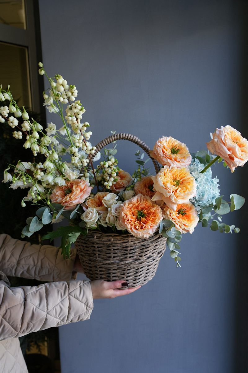 Роза кустовая ,Розы ,Дельфиниум ,Гортензия ,Эвкалипт