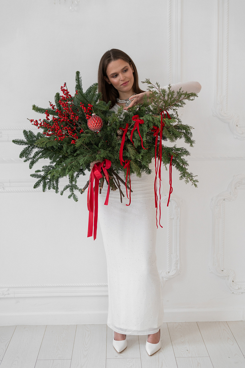 Такое искусное сочетание свежести нобилиса и праздничных деталей станет не только украшением вашего интерьера, но и символом уюта, надежды и радости в это волшебное время года.